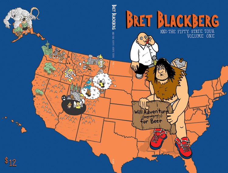 The SEVENTH book in the Bret Blackberg and Fifty State Tour collection is complete! For those not in the know, each chapter of this exercise/marathon is being completed as a 24 Hour Comic. Each state will get its own chapter, which means the final product will be 1200 pages of adventure, romance, betrayal, and beer. Unfortunately, I failed to post the Hawaii chapter earlier this week, as I had some other priorities. Anyhow, I once again completed it around 3:30 AM which seems to be the norm now. I could have finished early, but I didn’t, because I ended up playing with my cat for about 45 minutes (she is soooo cute sometimes!)